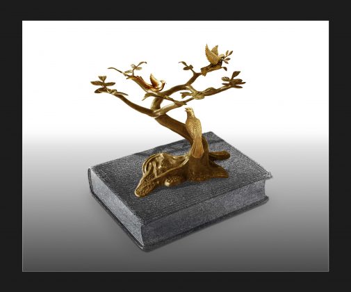 The sculpture depicts the mind as a tree and thoughts as birds. Birds come and go to the branches of the tree. Some fleetingly, some with more persistence. Some birds will take up residence in the tree, build a nest in its branches, giving birth to more thoughts.